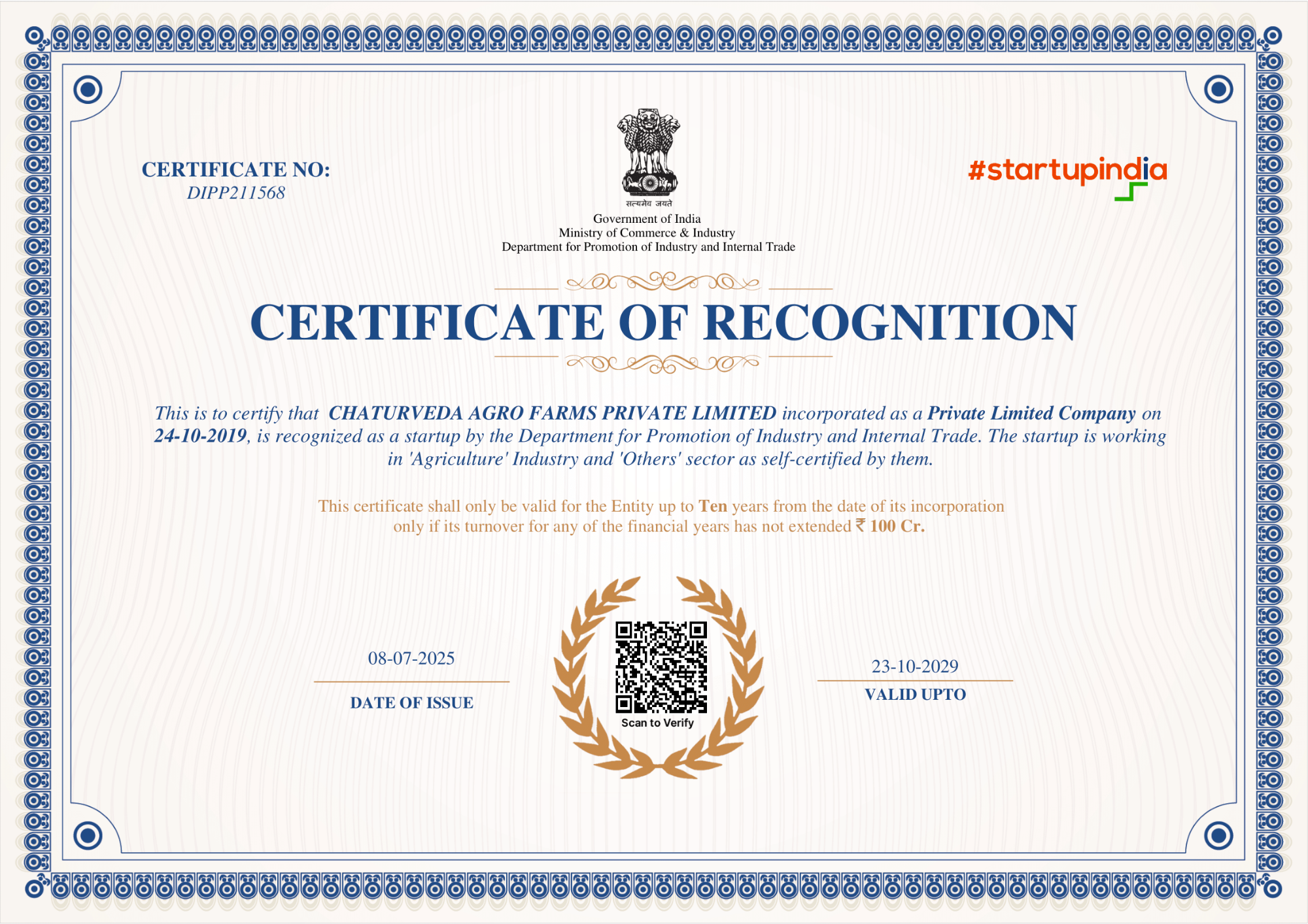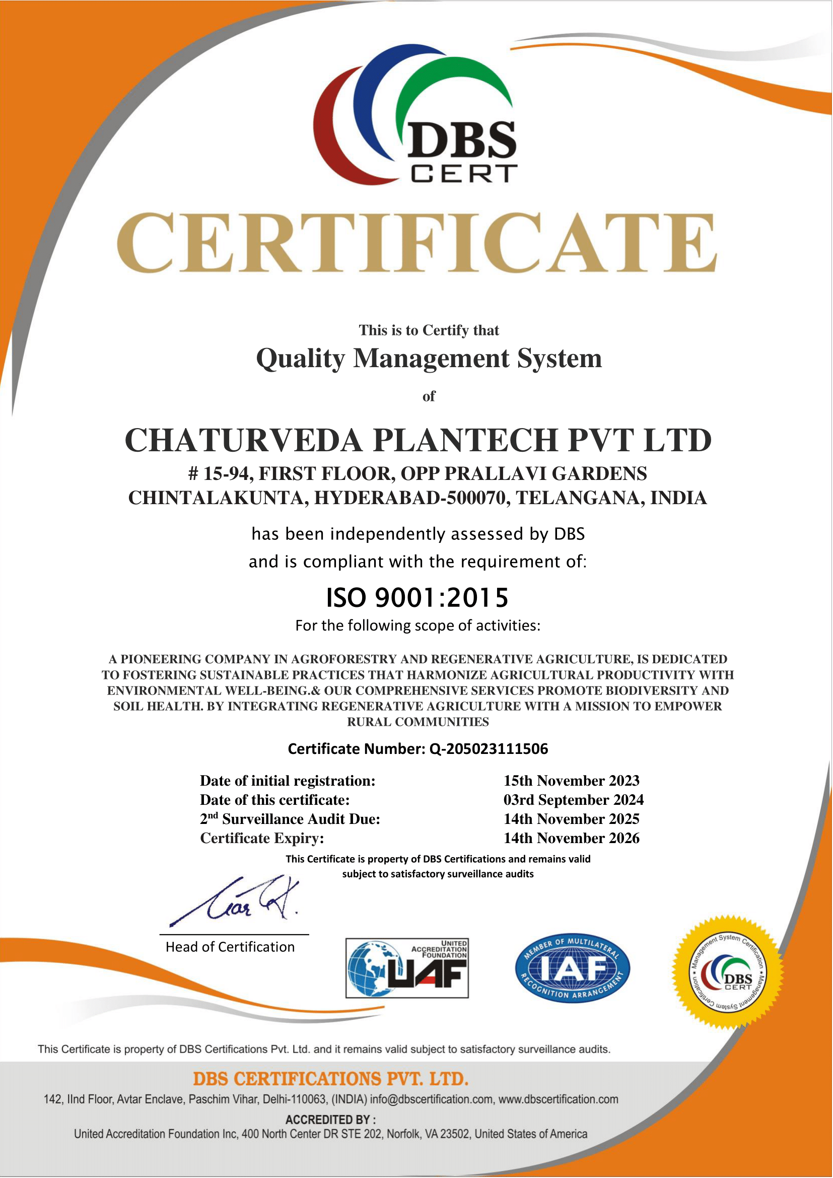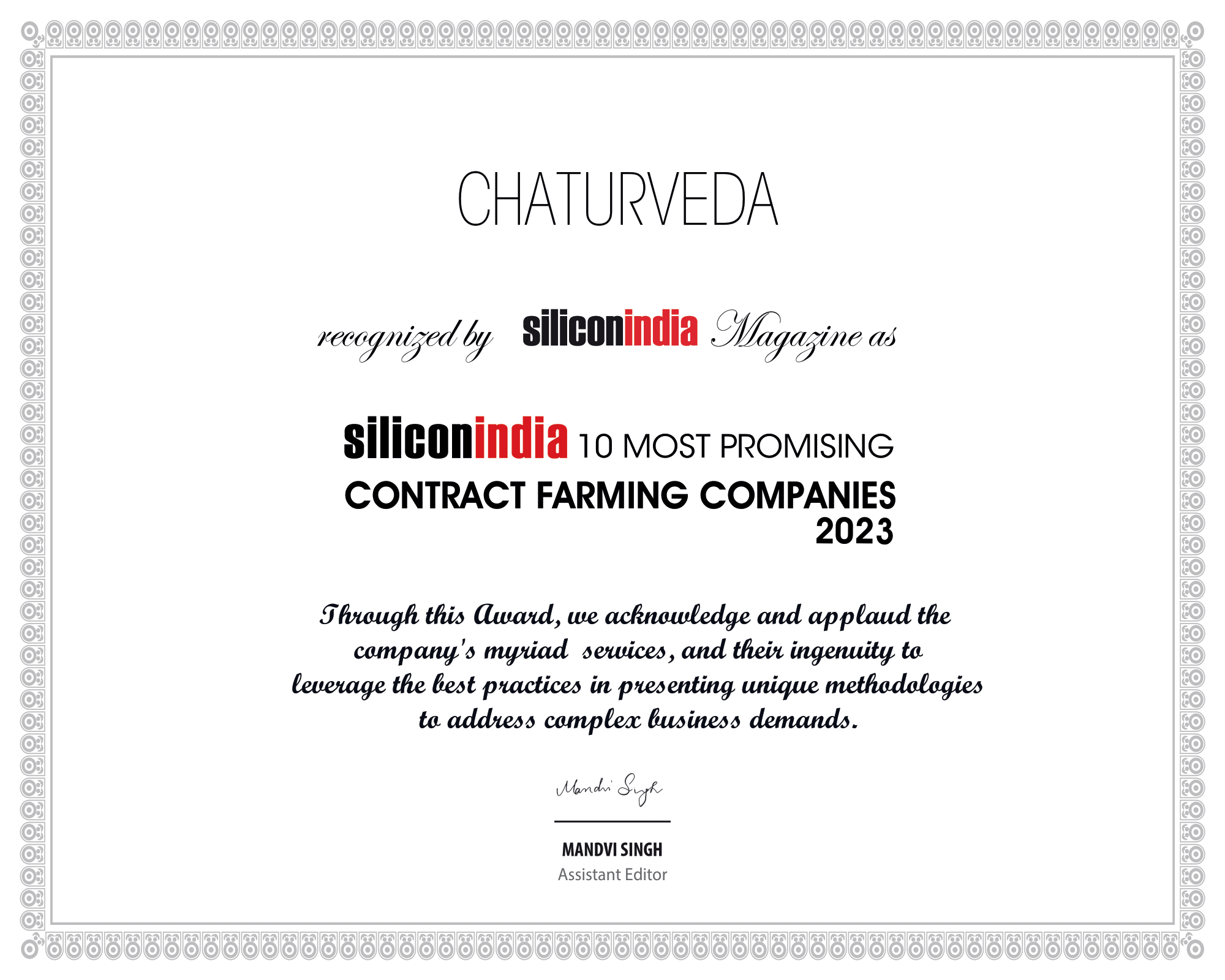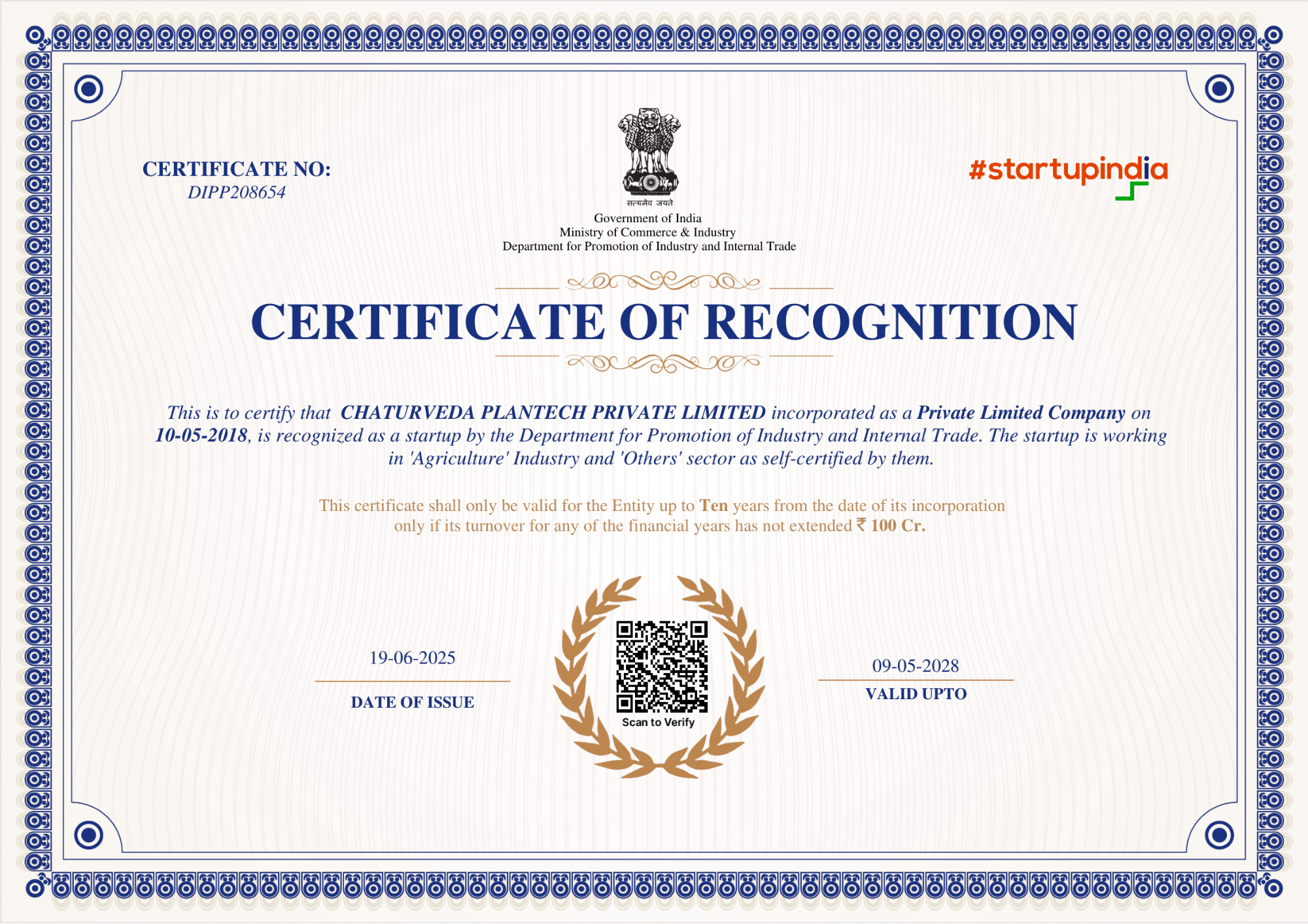 Certifications & Recognition | CHATURVEDA PLANTECH